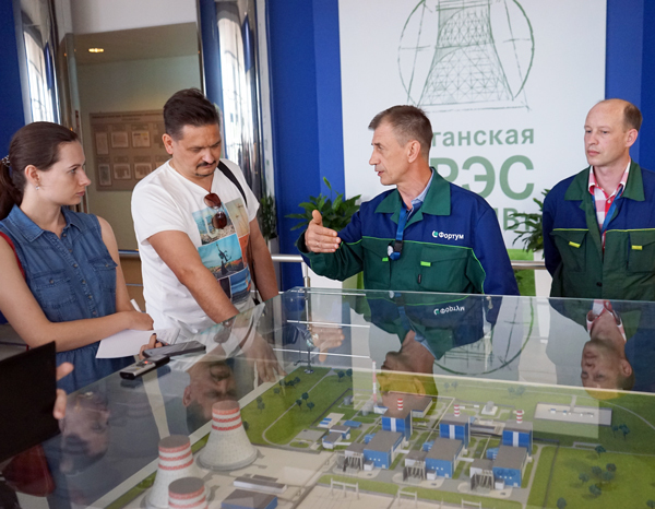 Алексей Иванович рассказал, как работает НГРЭС – сложный энергетический комплекс. По причине ограниченности времени журналисты смогли осмотреть лишь некоторые объекты: турбинное и котельное отделения главного корпуса, центральную насосную станцию, башенные испарительные градирни. Зато получили обстоятельные ответы на все вопросы. Некоторые факты, цифры показались любопытными. Например, поразило, что НГРЭС требуется столько же воды, сколько городу с 80-тысячным населением; что водоподогревательная установка, оказывается, работает на базе нанотехнологий и обратного осмоса. Ведь дорогое оборудование требует идеально чистой воды.