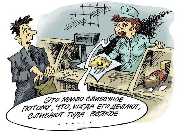 — Что вы все ко мне одному привязались. Ведь все такое масло продают и никто их не трогает…