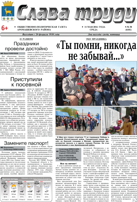 PDF-версия газеты «Слава труду» № 38 (6181) от 11.05.2016 г.