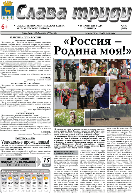 PDF-версия газеты «Слава труду» № 47 (6190) от 10.06.2016 г.