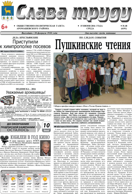PDF-версия газеты «Слава труду» № 48 (6191) от 15.06.2016 г.