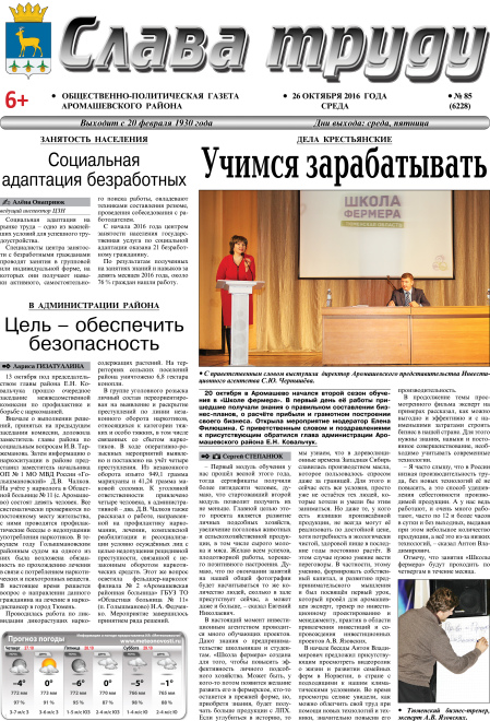 PDF-версия газеты «Слава труду» № 85 (6228) от 26.10.2016 г.