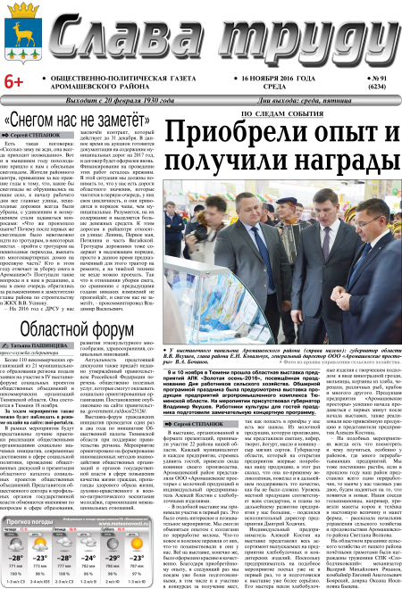 PDF-версия газеты «Слава труду» № 91 (6234) от 16.11.2016 г.