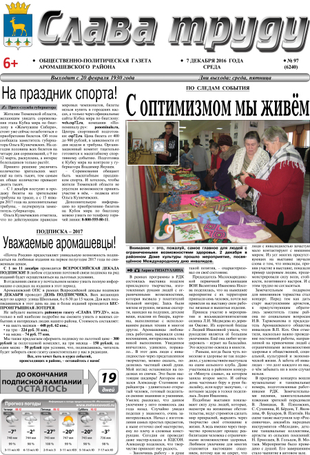PDF-версия газеты «Слава труду» № 97 (6240) от 07.12.2016 г.