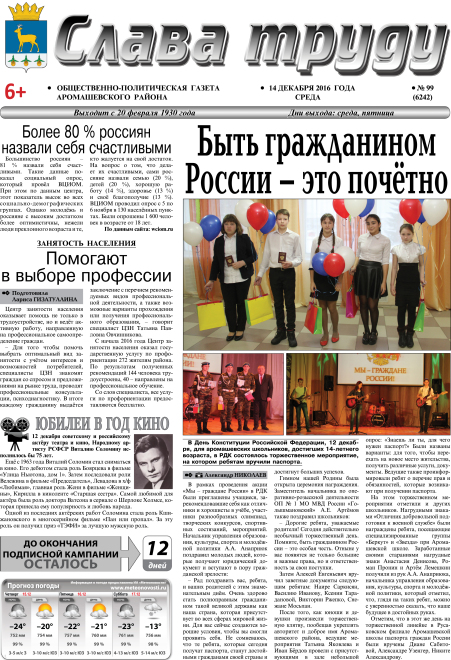 PDF-версия газеты «Слава труду» № 99 (6242) от 14.12.2016 г.