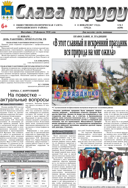 PDF-версия газеты «Слава труду» № 3 (6250) от 11.01.2017 г.