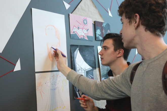 Примечательно, что организаторы предусмотрели отдельные бумажные полотна для всех желающих: в течение недели, пока будет работать выставка, каждый может оставить на ней свой космический след…