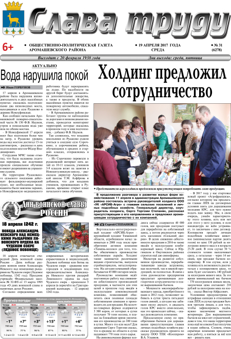 PDF-версия газеты «Слава труду» № 31 (6278) от 19.04.2017 г.