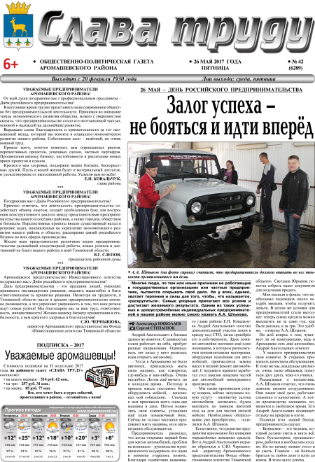 PDF-версия газеты «Слава труду» № 42 (6289) от 26.05.2017 г.