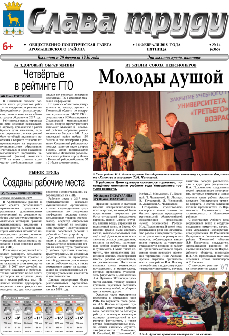 PDF-версия газеты «Слава труду» № 14 (6365) от 16.02.2018 г.