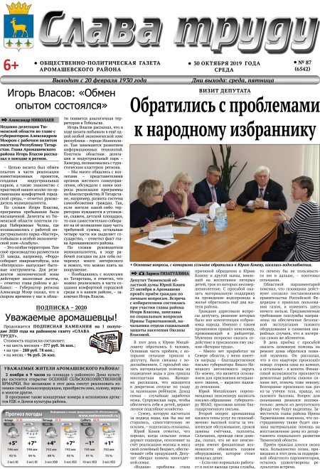 PDF-версия газеты «Слава труду» №87 (6542) от 30.10.2019 г.