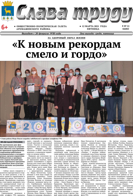 PDF-версия газеты «Слава труду» № 21 (6684) от 12.03.2021 г.