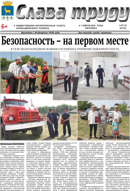 PDF-версия газеты «Слава труду» № 53 (6716) от 02.07.2021 г.