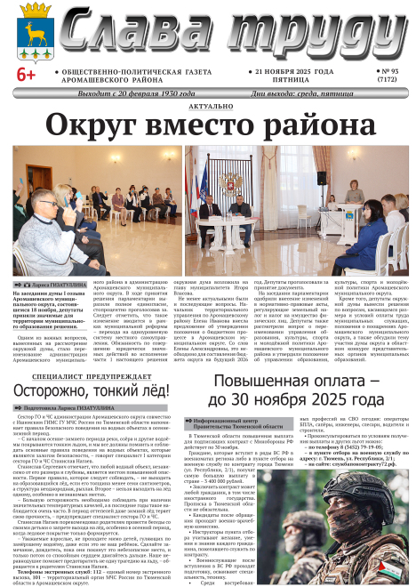 PDF-версия газеты «Слава труду» № 93 (7172) от 21.11.2025 г.