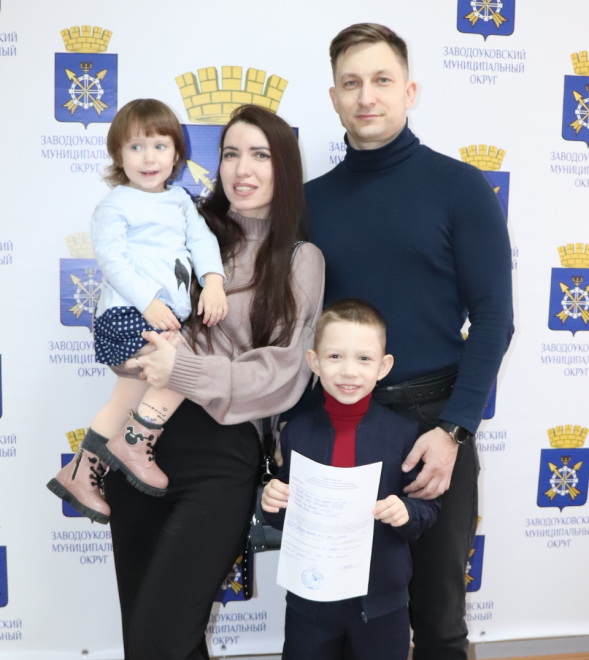 Выплатить долгосрочный кредит за жильё теперь сможет и семья Казанцевых из Заводоуковска. Получать свидетельство в большой зал администрации муниципалитета они пришли в полном составе: супруги Полина и Евгений, сын Егор и дочка Николь.
