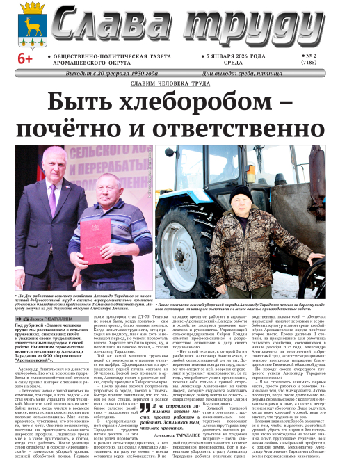 PDF-версия газеты «Слава труду» № 2 (7185) от 07.01.2026 г.