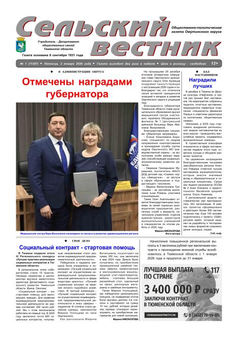 PDF-ВЕРСИЯ ГАЗЕТЫ "СЕЛЬСКИЙ ВЕСТНИК" №1 ОТ 2 Января 2026 ГОДА.