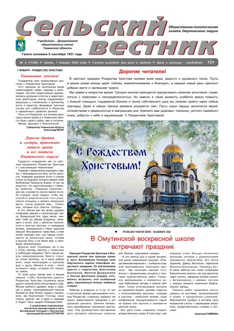 Уважаемые читатели! Предлагаем Вам электронную версию №2 газеты "Сельский вестник" от 7 Января 2026 года в формате PDF.