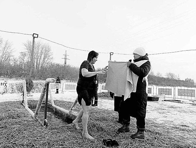 Волонтеры движения «Сибирь православная» помогали желающим совершить обряд, а после предлагали горячий чай и полотенца.