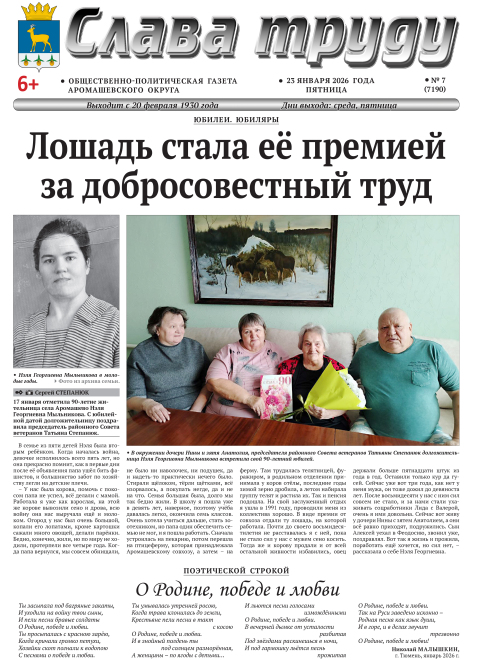 Уважаемые читатели! Предлагаем вам электронную версию газеты «Слава труду» № 7 от 23.01.2026 г. в формате PDF.