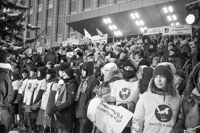 Это, конечно, надо было видеть – на экране, смонтированном на площади за два дня до события, нам показали, как на гербе города, расположенном на фасаде здания городской администрации, оживает дощаник, соскальзывает с герба и летит над городом мимо старинных купеческих домов и современных зданий из стекла и бетона, мимо дорог и мостов, парков и прудов. А дальше чудеса компьютерной графики рисуют нам сгусток энергии, который появляется над дощаником и превращается в факел. И факел, и дощаник возвращаются в здание на улице Первомайской, а затем уже мы видим – не на экране, а вживую, как из дверей выходят глава города Максим Афанасьев и председатель Тюменской городской думы Светлана Иванова и несут символический факел по ступенькам крыльца к сцене. Звучат хорошие слова о трудовой доблести и энергии тюменцев, связующей нити и преемственности поколений, а потом ведущий произносит: три, два, один! Факел загорается, в небо взлетает залп фейерверка. На экране появляются цифры обратного отсчета времени, оставшегося до юбилея города. Времени, которое будет наполнено энергией добрых дел и праздничных мероприятий.