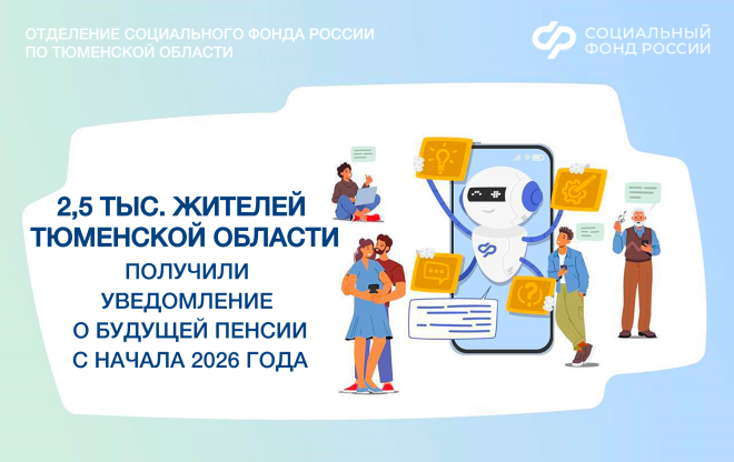С начала 2026 года Отделение Социального фонда России по Тюменской области направило проактивные уведомления о размере будущей страховой пенсии по старости 2,5 тысяче жителей региона.