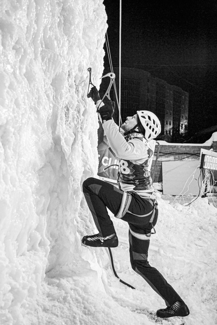 Сергей в ледолазании уже четвертый год. Раньше он занимался классическим альпинизмом, ходил в горы. Пришел на открытие вышки, попробовал с инструментами полазить.