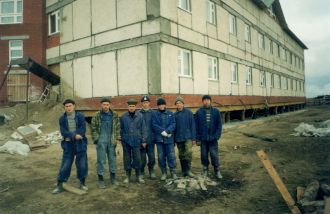 В начале июня объявили, что мы отправимся в посёлок Сё-Яха Ямало-Ненецкого автономного округа (предпоследний населённый пункт на окраине Обской губы) достраивать больницу. И вот в середине месяца мы уже мчим на поезде в Новый Уренгой. Оттуда вахтовками наш отряд из двух десятков парней и поварихи (супруги одного из бойцов) привезли в город Ямбург. После вертолётом с дозаправкой на Мысе Каменном нас доставили на место. Когда заходили на посадку, глаз не могли оторвать от местной бухты. Сам посёлок оказался небольшим – размером с нашу деревню Пономарёву. Но там были школа, аэропорт, почта и несколько магазинчиков. Заселили нас в строящееся медучреждение. Благо там уже были сделаны крыша, окна и межкомнатные двери. Стены – оштукатурены, а вот пол – бетонный. На складе нам выдали двухъярусные кровати, а местные вахтовики поделились обогревателями. За вечер мы наладили быт и уже на следующий день, разбившись на несколько бригад, начали заливать бетонную опалубку вокруг свайного фундамента больницы. После нас отправили выкладывать кирпичные перегородки в чердачном помещении строящегося здания.