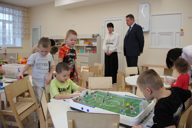 Из шести групп, на которые рассчитан детсад, работают уже четыре. Обслуживают подразделение 24 сотрудника, включая технический персонал.