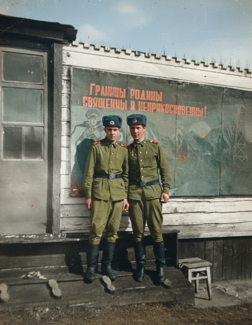 «Границы Родины священны и неприкосновенны»! С таким лозунгом бережно хранится чёрно-белый снимок в армейском альбоме Лазаря Григорьевича Кобелева, на котором изображен он вместе с сослуживцем. Этот снимок очень дорог нашему герою, так как напоминает о срочной службе в Курчумском пограничном отряде, в/ч 2535 Восточного пограничного округа в г. Мары.