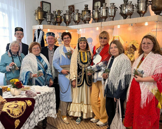 Большим успехом пользуются комбинированные экскурсии, экскурсионно-театрализованные программы, во время которых гости не только знакомятся с предметами одежды и промыслами, но и имеют возможность смастерить наряд по старинным образцам – тюбетейки, калфаки, платки, примерить и сфотографироваться на фоне интерьера из прошлого. Такие экскурсии мы проводим и для организованных групп, и для одного посетителя, и для семей с детьми.