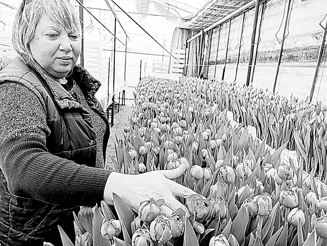 В теплицах разноцветное море – красные, розовые, желтые, махровые, бахромчатые. Еще около двухсот тысяч нарциссов, гиацинтов, крокусов и примул готовятся отправиться к покупателям. А для корпоративных клиентов уже собрали сто тысяч букетов.