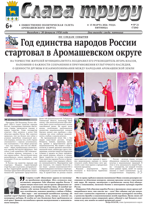 PDF-версия газеты «Слава труду» № 21 (7204) от 13.03.2026 г.