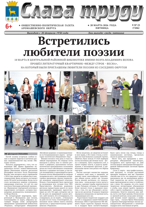PDF-версия газеты «Слава труду» № 23 (7206) от 20.03.2026 г.