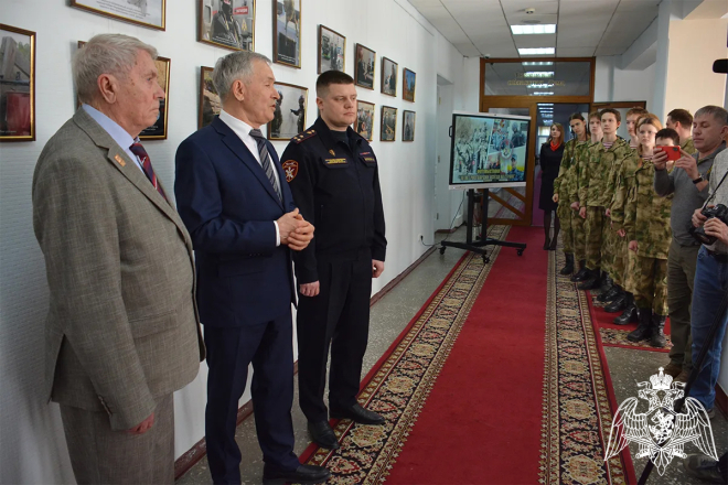 Открытие выставки посетил также ветеран Росгвардии, инициатор Всероссийского движения «Бессмертный полк» Геннадий Иванов. Он отметил, что помимо выполнения служебных задач росгвардейцы активно участвуют в общественно-значимых и патриотических мероприятиях, в том числе размещают портреты участников Великой Отечественной войны на автомобилях в преддверии празднования Дня Победы. Кадет Артём Терехов трогательно прочёл стихотворение «Всегда на страже».