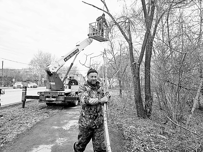 На вопрос, куда увезут спиленные ветки, отвечает коротко: