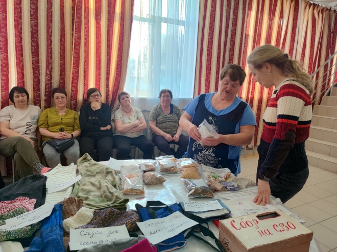 В волонтерской группе «Надежда», которая действует в селе Онохино, все обязанности распределены: одни шьют, другие вяжут, третьи сушат…