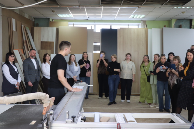 В мебельном цехе предпринимателя Евгения Ускова соседи познакомились не только с производством, но и с «Территорией ПрофПросвета» – профориентационным пространством для школьников Заводоуковского округа.