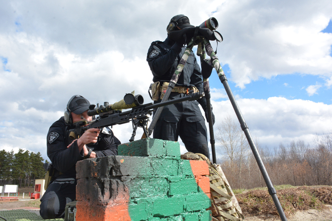 Росгвардейцы выполнили несколько упражнений по стрельбе из табельного оружия: пистолета, автомата Калашникова и снайперской винтовки. Из пистолета стражи правопорядка поразили цель на расстоянии 25 метров, из автомата — на 100 метров, из снайперской винтовки — 300 метров.