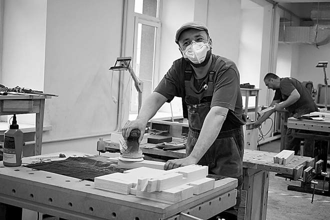 Они не слышат и почти не говорят. Но они видят – и могут точно повторить. На чемпионате «Абилимпикс» соревнуются в столярном деле (категория «специалисты») пятеро глухих участников. Им предстоит за четыре часа собрать табурет из массива сосны.