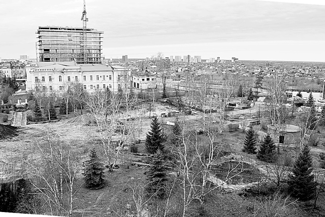 На площади Борцов Революции продолжается ремонт. Уже убрали плитку и колонны вокруг «Дерева счастья».