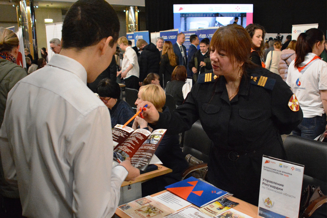 Военнослужащие и сотрудники Управления Росгвардии по Тюменской области приняли активное участие в ежегодной всероссийской ярмарке вакансий «Работа России. Время возможностей», которая состоялась во всех муниципалитетах региона. Росгвардейцы познакомили соискателей работы со специальностями и профессиями службы, с вакансиями гражданского персонала, а также с возможностью получения высшего образования в военных институтах войск национальной гвардии Российской Федерации, Воронежском институте МВД.