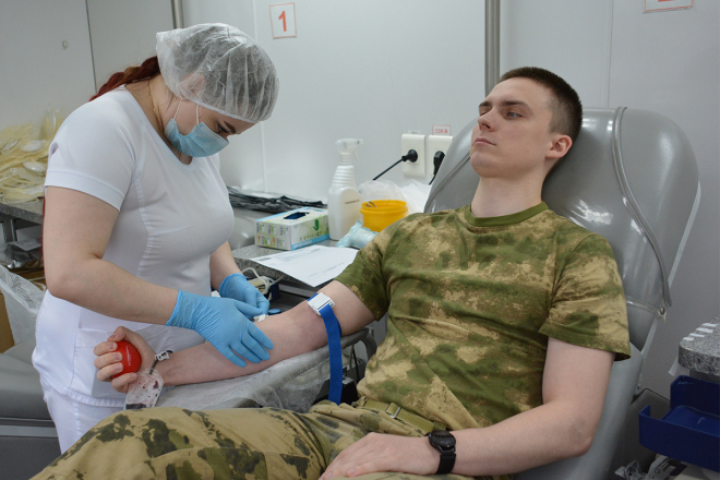 Росгвардейцы пополнили донорский банк областной станции на более чем 23 литра крови и поздравили медиков с праздником.