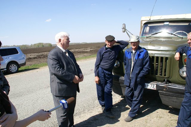 В этот же день Ю.М.Конев побывал на Окуневском отделении ЗАО «Племзавод-Юбилейный», побеседовал с механизаторами, которые вели сев, - был самый разгар рабочего дня полеводов.