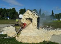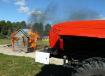 Огонь разгорелся быстро. Дети восприняли его как общелагерный костёр и начали громко скандировать: «Гори, гори ясно, чтобы не погасло». Пока одна девчушка не сказала вдруг: «Домик жалко. Он такой хорошенький!» И дети притихли, осознав, что горит строение, которое надо спасать. Тут и пожарные на своей красной машине подоспели и направили струи воды на алчные языки пламени. Чтобы показать, как тушат пожар с помощью пены, бойцам отряда пришлось осуществить вторичный поджог обуглившегося изнутри домика.