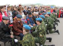 В этот знаменательный день природа не подарила жителям района тепло и солнце, но праздник этим омрачён не был. По давно сложившейся традиции 9 Мая, в День Победы, в центре Аромашево у обелиска павшим в годы Великой Отечественной войны прошёл торжественный митинг. Он начался в 10 часов утра, но выставление почётного караула, вручение волонтёрами георгиевских лент, передача по громкоговорителям песен военной тематики были организованы гораздо раньше.