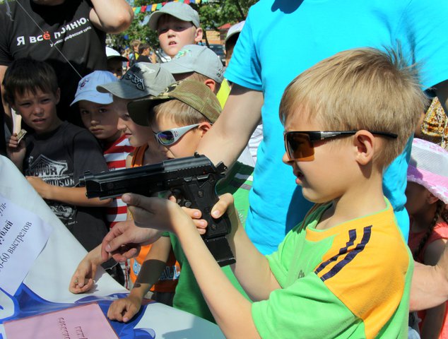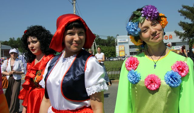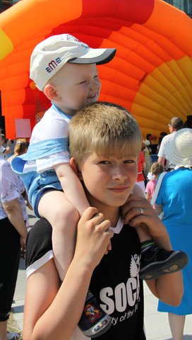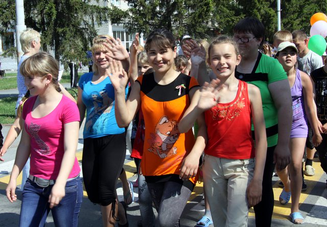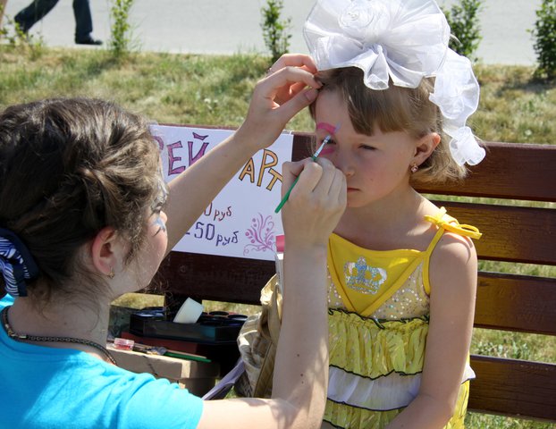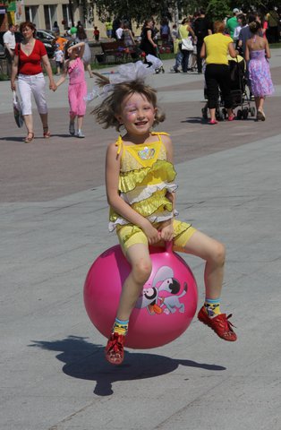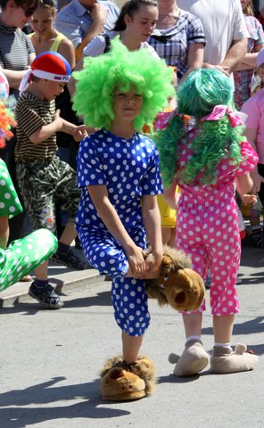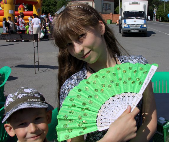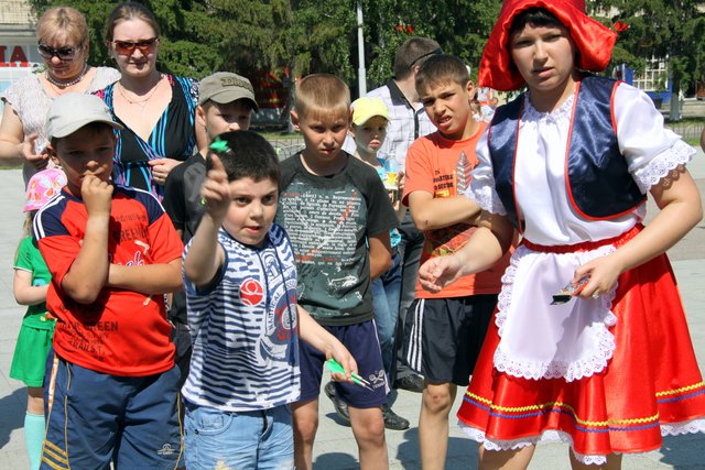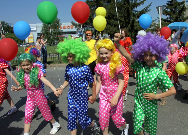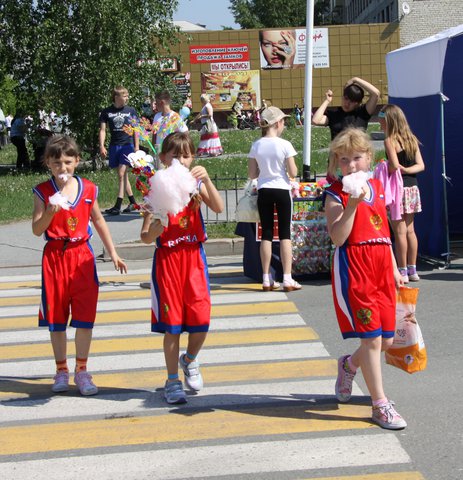 Погода 1 июня выдалась на редкость жаркая. Зонты в этот день были нужны разве что от солнца. Их яркие шляпы стали неотъемлемой частью детского праздника.
