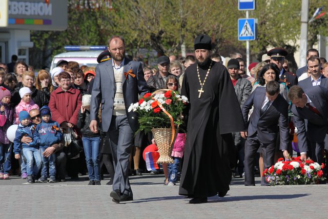 В День Победы заводоуковцы поддержали всероссийскую акцию «Бессмертный полк»: горожане пришли к мемориалу памяти с фотоснимками своих родных и близких – участников Великой Отечественной.