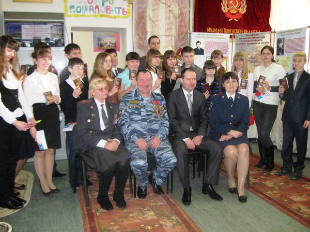 Фотографии с торжественного вручения паспортов в музее УМВД России по Тюменской области (Центральный административный округ) 20.01.2012 г., в Управе Калининского административного округа 21.01.2012 г., в МОУ СОШ №64 (Восточный административный округ) 22.01.2012 г.